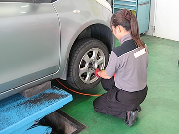 当店の国家整備士より、タイヤの交換作業をさせて頂きます。 |