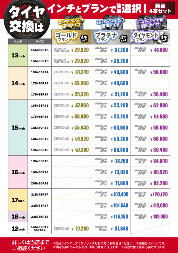 ※当店までタイヤを直接配送される場合は、事前にご連絡下さい。